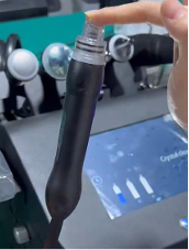 Our second probe is our eye ultrasound probe. It can be used in conjunction with eye creams and essences to help reduce eye lines, promote eye circulation, lighten dark circles, and can also be used to accelerate the absorption of eye essences. Click on the right button to select the eye ultrasound click to enter, our energy can be adjusted to three levels. The optimal time can be operated for 5 minutes to 10 minutes. The ultrasonic mode can also be adjusted.