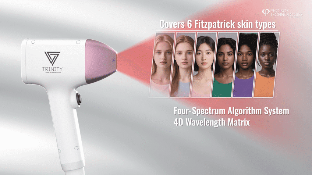 Trinity has multiple operation modes depending on skin phototype as well as hair colour, catering to everybody.